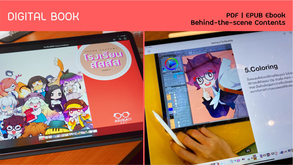 นานาสัตว์ในชุดเครื่องแบบนักเรียนน่ารัก สดใสและสนุกสนาน ออกแบบโดย ASUKA111 แพ็คสุดคุ้มรวบรวมคอนเท้นต์ดิจิตัล อาทิ Ebook เบื้องหลังการทำงาน, บรัช Procreate, ภาพร่างเบื้องหลังและตัวอย่างต้นฉบับ, วิดีโอแนะนำการเพ้นท์ติ้ง
